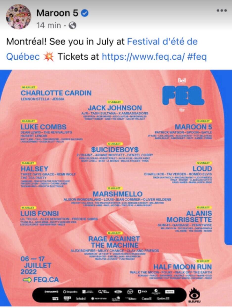 Le Grand Retour Du Feq Maroon 5 Sum 41 Et D Autres Artistes Reagissent A La Programmation Jdq